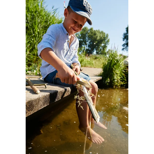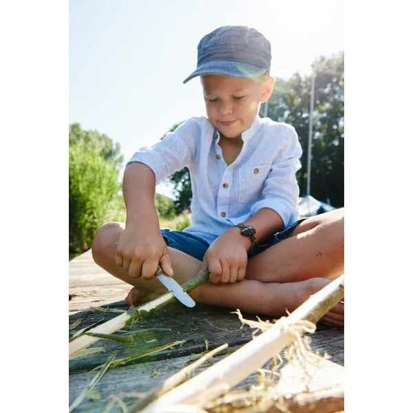 Ce couteau de poche pratique pour enfants en bois et en acier inoxydable est solide et se tient facilement et en toute sécurité dans les mains des enfants. Il a une pointe arrondie et un double anneau de sécurité qui empêche le repliement ou l’ouverture accidentelle du couteau. Que ce soit pour sculpter, créer avec des matériaux naturels ou lors d’un pique-nique – ce couteau de poche a de multiples usages. Après utilisation, il peut être rangé en toute sécurité dans la housse en feutre fournie et, grâce au mousqueton en aluminium, il peut être facilement attaché à un sac à dos ou à une ceinture.