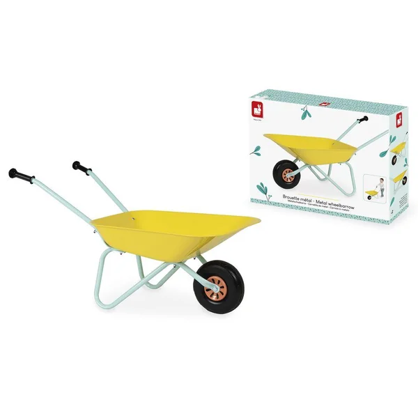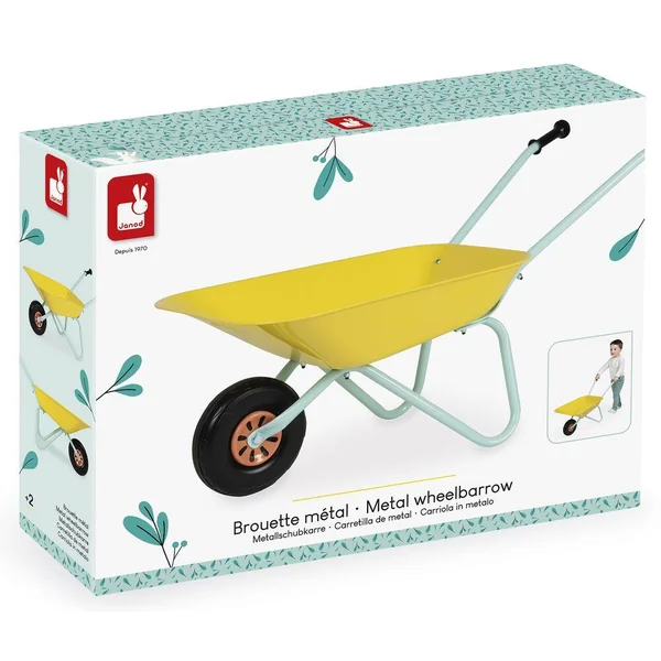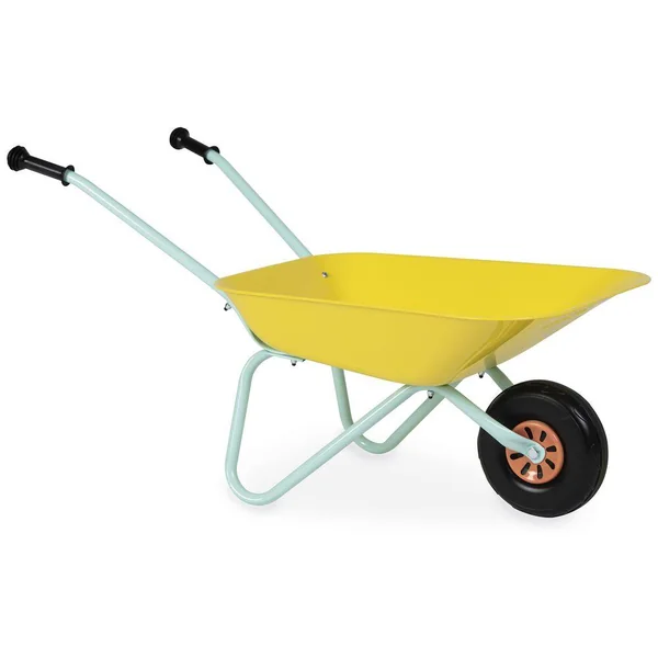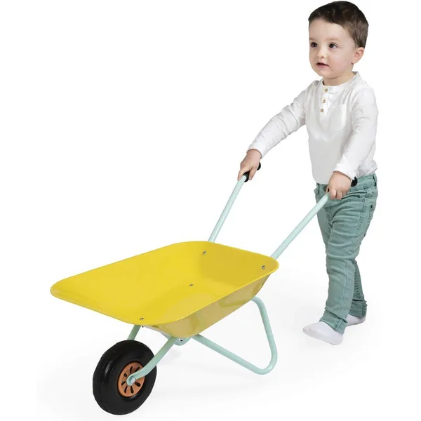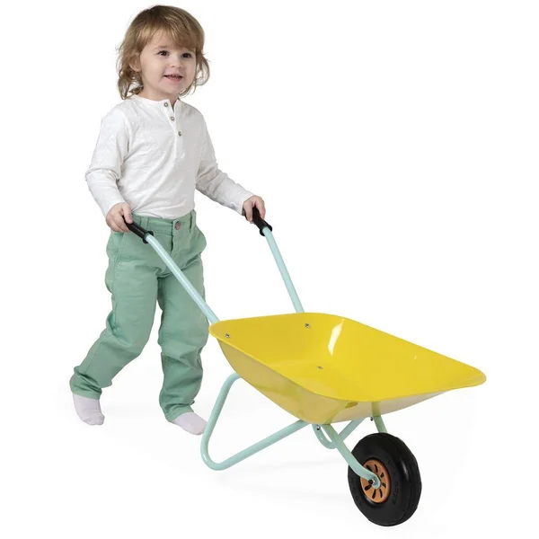 Gazon, feuilles, terre, sable, on charge la brouette et Oh ! Hisse ! On roule pour emmener le chargement tout au bout du jardin ! Grâce à cette brouette votre enfant pourra participer aux aménagements extérieurs comme papa et maman. Cette jolie brouette en métal avec sa roue en plastique et ses deux supports latéraux est stable, robuste et légère. Ses poignées en caoutchouc sont idéales pour une bonne prise en main même pour les plus petits. Cette brouette fera la joie des jardiniers en herbe en les encourageant à découvrir leur environnement extérieur et les joies de la nature. Jouet en métal. Jouet de plein air pour les enfants à partir de 2 ans.