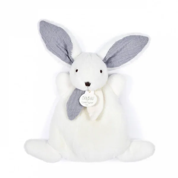 Ce petit Doudou lapin HAPPY blanc pur est extrêmement doux et tendre. Adorable avec son pompon blanc soyeux ainsi que ses touches de lange blanc et ciel, il est blotti dans une superbe boîte cadeau aux graphismes évoquant à la fois la modernité et le luxe, comme dans un écrin magique. Un cadeau idéal dès la naissance. Doudou est lavable à 30°. Inédit ! Ce produit bénéficie de LA GARANTIE DOUDOU. Grâce à son numéro unique, Doudou perdu est vite retrouvé ! Enregistrez votre Doudou et découvrez toutes les garanties sur le site doudouetcompagnie.com