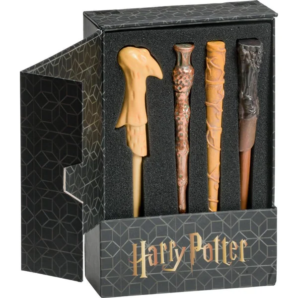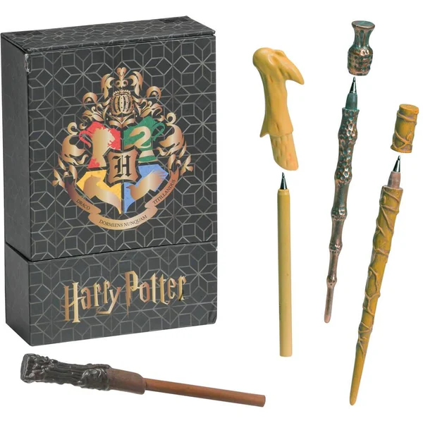 Coffret contenant 4 stylos bille chacun aux couleurs d’une maisons dans Harry Potter. Les 4 maisons sont : Gryffondor (en anglais Gryffindor), Serpentard (en anglais Slytherin), Serdaigle (en anglais Ravenclaw), et Poufsouffle (en anglais Hufflepuff). Les 4 stylos bille sont avec de l’encre noire. Tous les stylos peuvent être rangés dans la jolie boîte de présentation, dimensions 21.2 x 11 x 5.5 cm. Longueur d’un stylo : 28 cm environ. Instructions imprimées sur la boîte. Ce produit n’est pas un jouet.