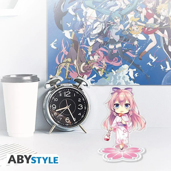 Faites entrer l’essence des fleurs de cerisier et des festivals de printemps dans votre maison avec cet Acryl® de Megurine Luka par ABYstyle, facile à assembler. L’esthétique rose précieuse de la chanteuse virtuelle brille lorsqu’elle prend la pose sur une fleur de cerisier en mangeant une pomme d’amour. L’ajout parfait à votre collection de figurines !
