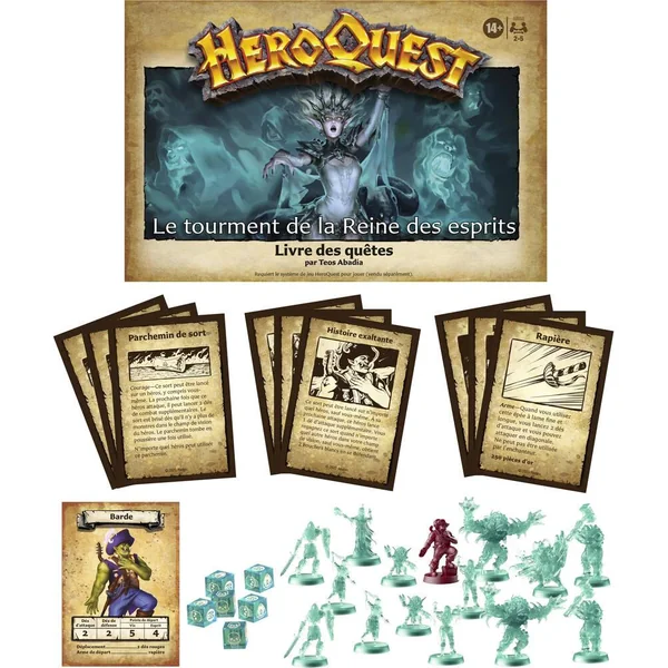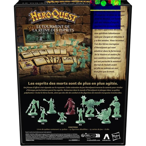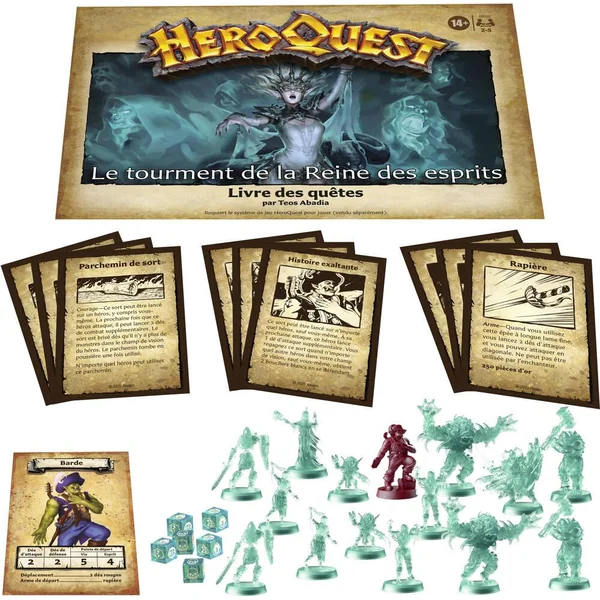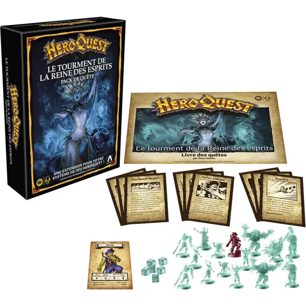 AGRANDIR SA COLLECTION DE FIGURINES : Cette extension de jeu inclut 33 figurines détaillées (non peintes), comme le héros barde et des figurines de monstres turquoiseINCLUT 14 QUÊTES PASSIONNANTES : Le Livre des quêtes de Spirit Queen’s Torment, écrit par Teos Abadia, inclut 14 quêtes dans des lieux dangereux pleins de monstres, de trésors, de sorts et de secrets magiques cachésSE REJOUE À L’INFINI : Les joueurs plongent dans l’univers d’HeroQuest avec cette extension qui ajoute à la rejouabilité du jeu Les joueurs peuvent aussi créer leurs propres histoires et leurs propres quêtes –