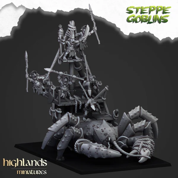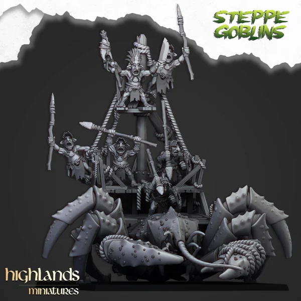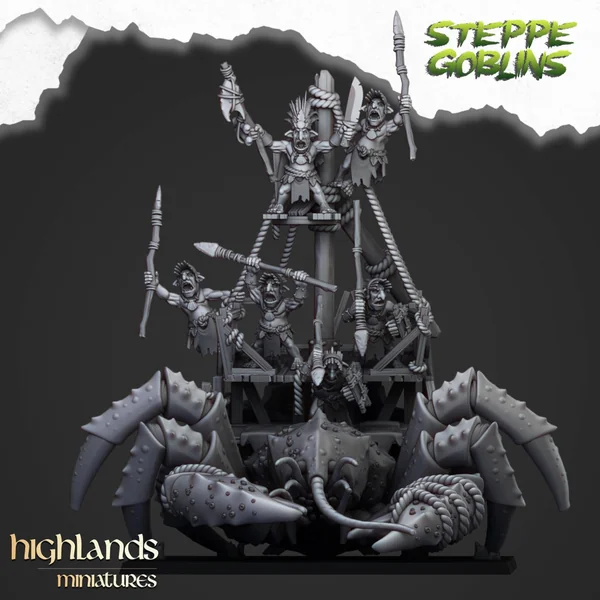Highlands Miniatures – Steppe Goblins – Mounted Coast Goblins on Giant Crab