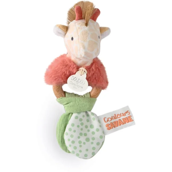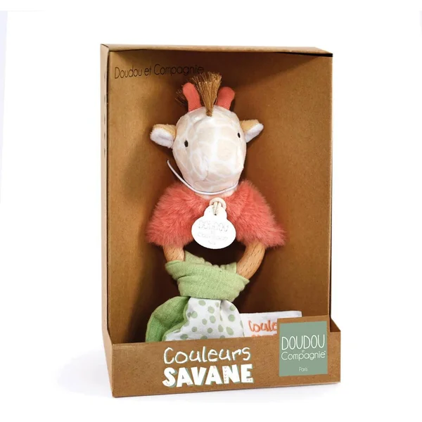 Avec les Doudous et accessoires COULEURS SAVANE, bébé saura facilement apprivoiser ces sublimes animaux pour jouer, rêver et s’éveiller au monde qui l’entoure ! Ce hochet girafe à la belle crinière apportera de grands moments de jeu ! Anneau en bois facile à manipuler par les petites mains de bébé, agrémenté de tissus en coton et coton lange et velours de coton, il participera assurément à l’éveil de tous ses sens de bébé ! Présenté dans sa jolie boîte cadeau, à offrir dès la naissance. Ce produit bénéficie de LA GARANTIE DOUDOU. Grâce à son numéro unique, Doudou perdu est vite retrouvé ! Enregistrez votre Doudou et découvrez toutes les garanties sur le site doudouetcompagnie.com.
