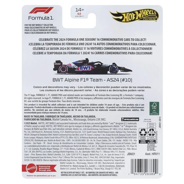 L’assortiment comprend 16 voitures de Formule 1® uniques aux couleurs de 2024. Chaque véhicule est vendu séparément. Certains produits peuvent ne pas être commercialisés.