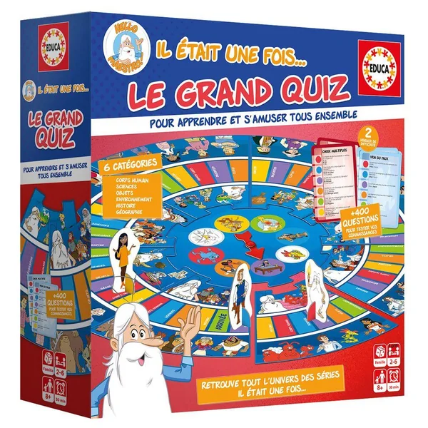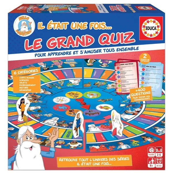 Soyez le premier à atteindre la ligne d’arrivée en répondant correctement aux questions dans 6 catégories (corps humain, sciences, objets, environnement, histoire, géographie). Les jeux durent rapidement 20 minutes.