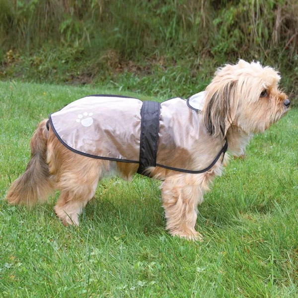 Trixie Imperméable Tarbes transparent – imperméable transparent avec patte réfléchissante, un élastique pour la queue assure que l’imperméable ne se décolle pas, il est fabriqué en PVC résistant. Fermeture par velcro sur le ventre.