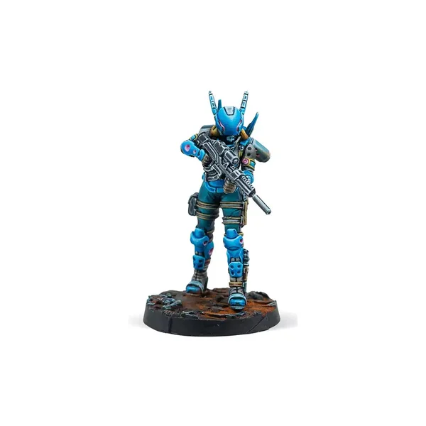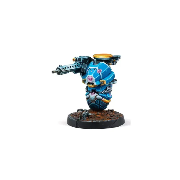 Cette boîte contient trois figurines pour PanOcéanie : un Drummer avec fusil de tireur d’élite (Marksman Rifle), un Drumbot armé d’un Feuerbach, et un Drumbot équipé d’un HMC. Une option légère et très mobile pour offrir un appui-feu puissant à votre force de combat panocéanienne issue du Operation Sandtrap Battle Pack (OPSAND).