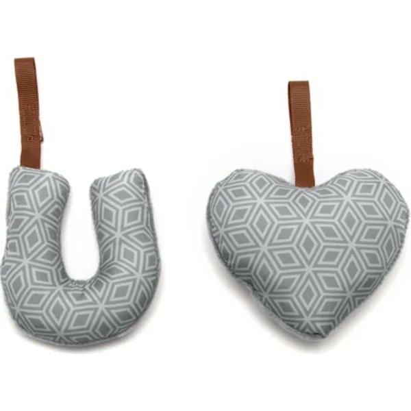 La barre de jouets amovible comprend deux jouets en peluche que le bébé peut attraper.