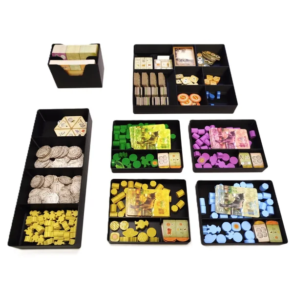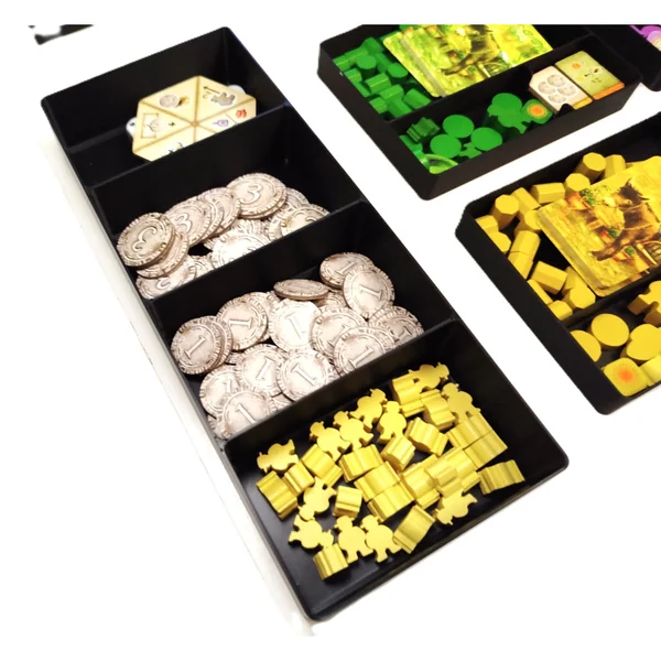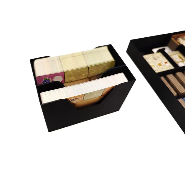 Conçu spécialement pour le jeu El Burro, cet insert optimise le rangement de toutes les pièces du jeu : tuiles, pions et cartes (avec ou sans sleeves), le tout dans une seule boîte. Chaque compartiment a été pensé pour une installation rapide et efficace.
