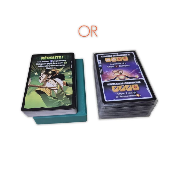 Chaque personnage dispose d’un compartiment individuel qui regroupe :- Ses cartes (compatibles sleeves grâce à un adaptateur amovible pour ceux qui n’utilisent pas de sleeves),