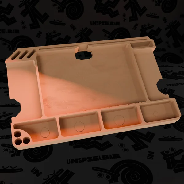 Le point fort de l’insert est sans conteste la carte détaillée du désert en relief sur les 4 plateaux joueurs intégrés. Ils permettent non seulement de garder la table bien rangée pendant la partie, mais ils peuvent également être utilisés pour ranger le matériel individuel des joueurs de manière pré-triée lors du rangement ;
