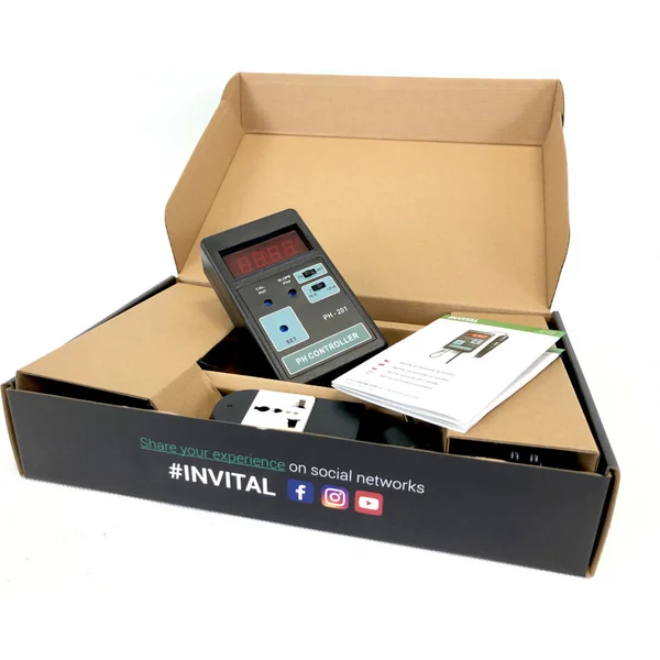Contenu de l’emballage : contrôleur de pH, sonde de pH (vous pouvez trouver une sonde de pH de remplacement ici)