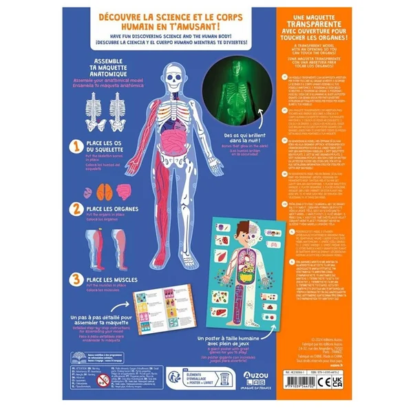Découvre le corps humain et place les organes, les muscles et les os phosphorescents dans la maquette !