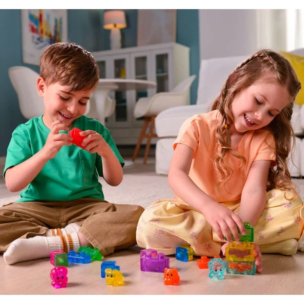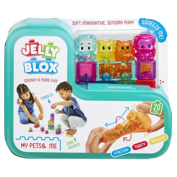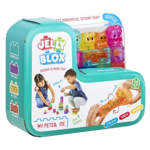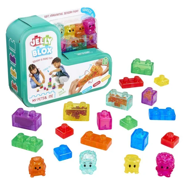 Découvrez Jelly Blox – My Pets and Me, le jeu de construction sensoriel nouvelle génération qui allie créativité, douceur et éveil tactile pour les tout-petits. Conçu spécialement pour les jeunes enfants, ce coffret invite à explorer un univers ludique autour des animaux tout en développant leurs capacités motrices et sensorielles.Ce set inclut des blocs souples ainsi que des personnages et animaux adorables, permettant aux enfants de créer leurs propres histoires et aventures. Les Jelly Blox sont mous, flexibles et extensibles, avec des remplissages variés (sable, mousse, petites billes…) qui stimulent le toucher et éveillent les sens. Environ 20 blocs sensoriels