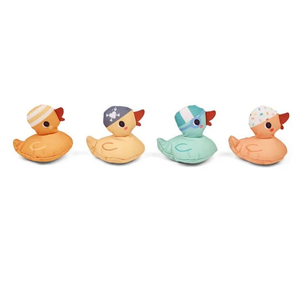Habillés de leurs plus beaux bonnets de bain, les canards barbotent gaiement dans la baignoire. Votre tout-petit va s’amuser à pêcher tout ce petit monde ! Mais on dirait bien qu’un crabe farceur s’accroche à la ligne ! Malin, il cherche à chatouiller les canards pour aider bébé à les attraper ! Ce jeu de pêche magnétique est parfait pour stimuler l’imagination des tout-petits au moment du bain : à l’enfant d’inventer milles histoires amusantes. Avec ce set de bain, des heures de jeux et de rires dans l’eau attendent votre bambin !