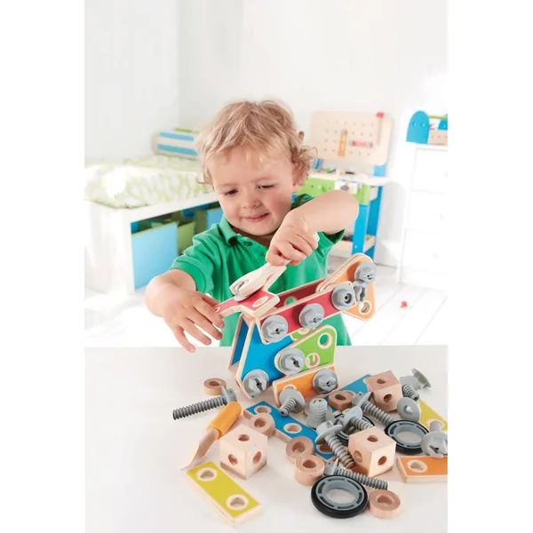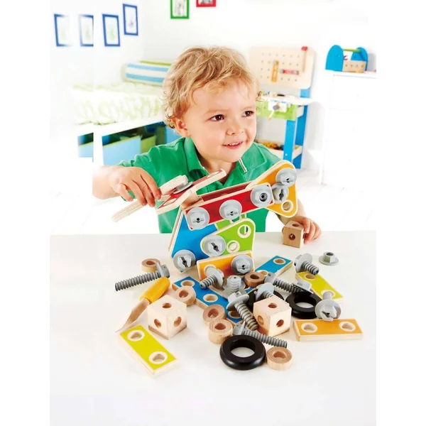 Ce kit de 62 pièces et connecteurs encourage les bricoleurs et inventeurs en herbe à construire toutes sortes de structures et laisser libre court à leur créativité.