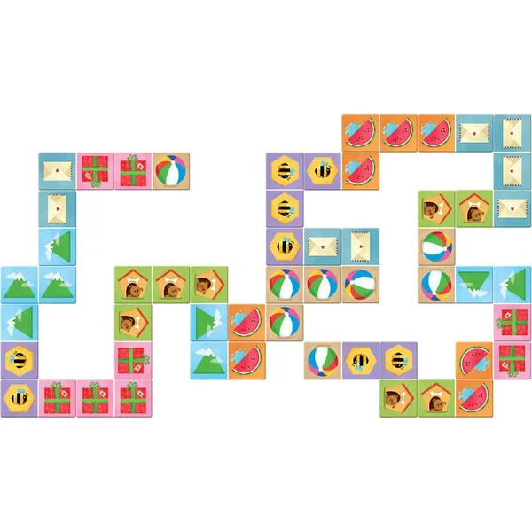 Un livre de 10 pages et 28 grandes cartes domino pour développer la motricité fine, stimuler l’apprentissage et favoriser la concentration. Reconnais les images et apprends les formes en jouant !