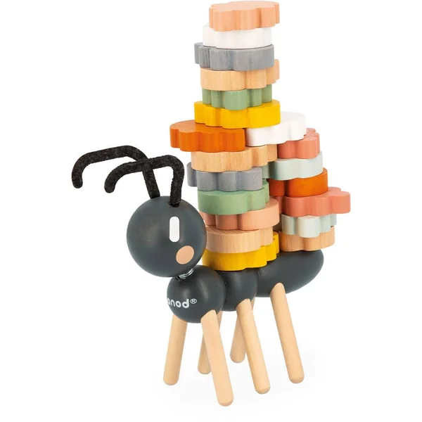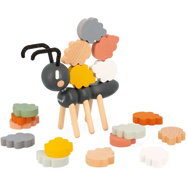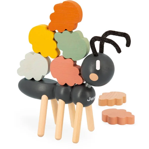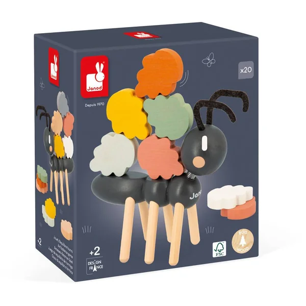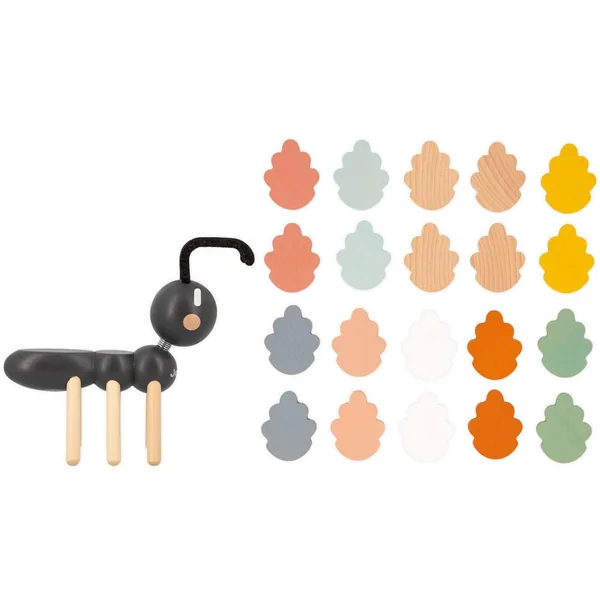 La fourmi doit emporter le plus de feuilles possible à la fourmilière pour l’hiver mais attention à ne pas tout faire tomber ! Patience et minutie seront nécessaires pour que votre enfant puisse placer toutes les feuilles sur le dos de la fourmi. Il est possible de jouer seul ou à plusieurs. Dans ce cas, le joueur qui fait tomber la pile de feuilles à perdu ! Contient une fourmi en bois avec des antennes en feutrine et 20 feuilles de différentes couleurs. Idéal pour le développement de la dextérité et de la concentration. Jouet en bois FSC™. Jouet d’équilibre pour les enfants à partir de 2 ans.