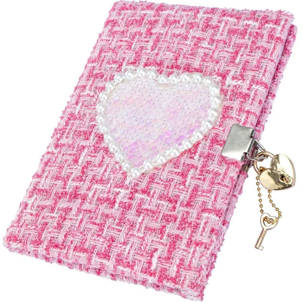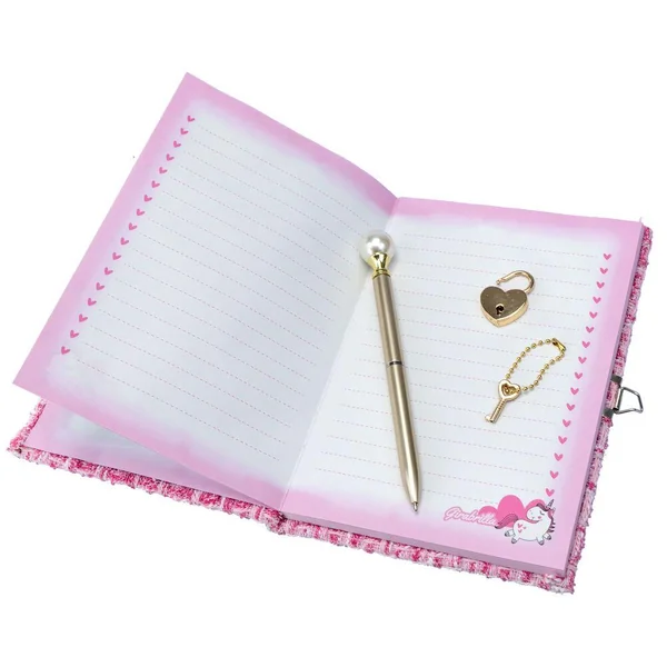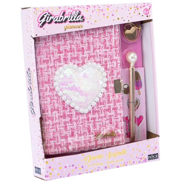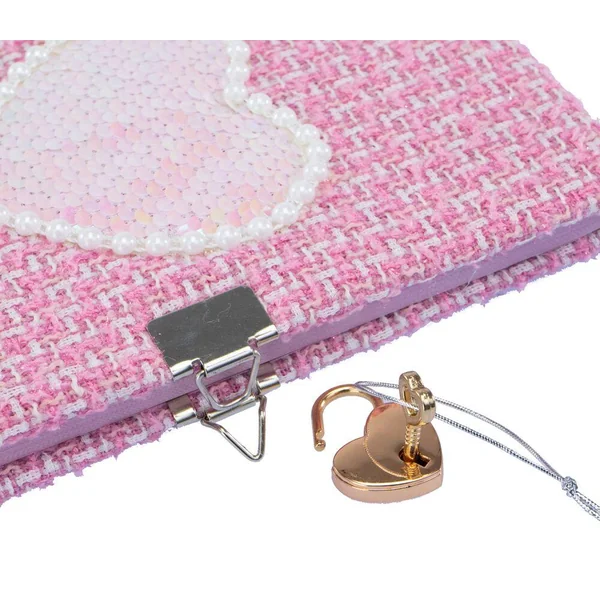 Journal exclusif pour écrire, colorier, dessiner et ranger vos idées. Fantastique couverture en tweed avec décorations réversibles de paillettes et de perles. Le paquet, en plus de l’agenda, contient le cadenas en forme avec sa clé et le stylo assorti.