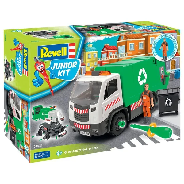 Construis ton camion poubelle et aide les éboueurs à nettoyer la ville. Accroche la poubelle, vide-la dans le bac dde collecte et actionne la benne mobile pour la décharger. Très facile à monter et à démonter, avec un système de vissage adapté aux plus petits. 5 pièces à assembler. Camion roues libres, portes amovibles, poubelle sur roues avec couvercle amovible. Figurine fournie.