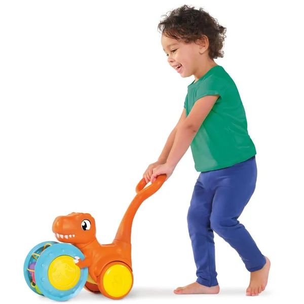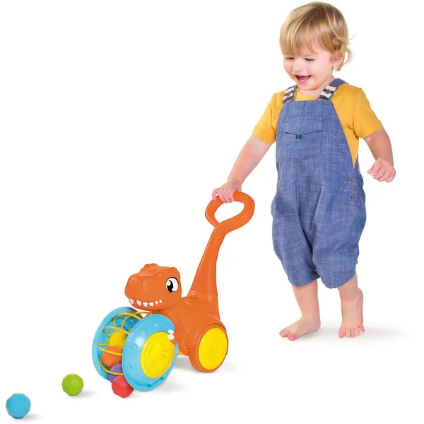 Un joli T-Rex collecteur de boules de roche. Lorsque Bébé avance et roule sur les 5 boules de roche, le T-Rex les récupère. Grâce aux fils flexibles, bébé peut facilement les enlever pour les placer sur son chemin. Il y a même un peu de place sur le dos du dinosaure pour contenir l’un de nos petits dinosaures (vendu séparément). La partie centrale se détache pour s’utiliser comme un jouet au sol. Idéal pour développer la motricité de votre enfant.