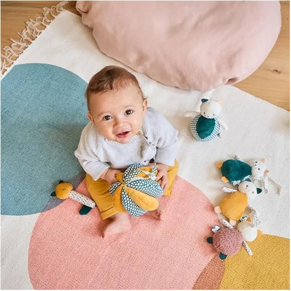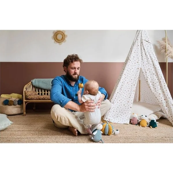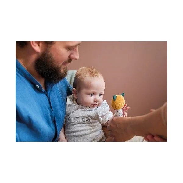 Ce hochet doux et en peluche est conçu et fabriqué en collaboration avec des thérapeutes psychomoteurs, il est idéal pour attirer l’attention du bébé et développer sa dextérité.