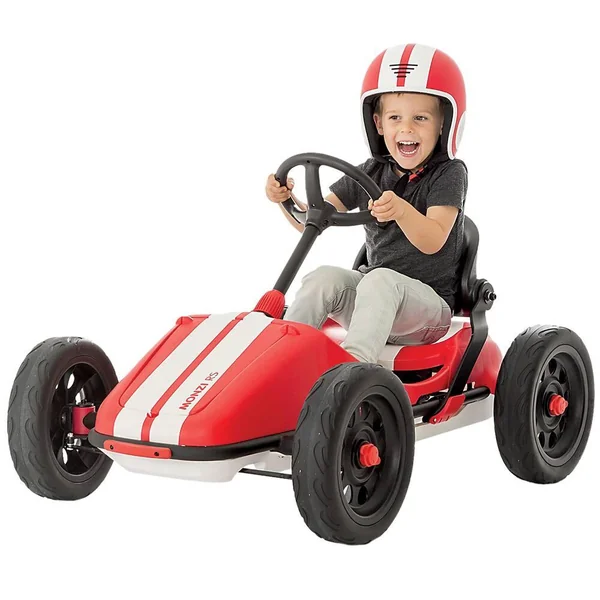 Age : 3-7 ans. Coloris : rouge. Go-kart monoplace avec l’apparence d’une vraie voiture de course : vas-y à fond sur la piste ! Kart à pédales pliable innovant : siège et volant rabattables sans outils. Support mural inclus pour le ranger dans le garage. Dossier réglable sans outils. Roues de 12 pouces surdimensionnées (soit 30.5 cm). Afr-hub : pédalage automatique avant / arrière / roue libre. Espace de rangement sous le capot. Vrai frein à main. Pneus airless (sans air) en caoutchouc : pas de pompe, bonne adhérence. Poids maximum supporté : 35 kg. Notice de montage incluse. Laissez à une personne adulte le soin de plier et de régler la colonne de direction, le dossier du siège et les attaches associées. Matières du kart : acier, plastique et caoutchouc. Casque non fourni : casque Bobbi rouge vendu séparément (réf. JCU 22042976).