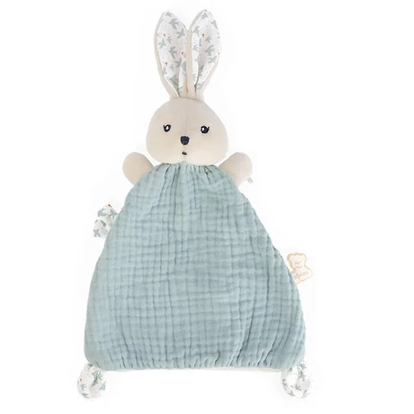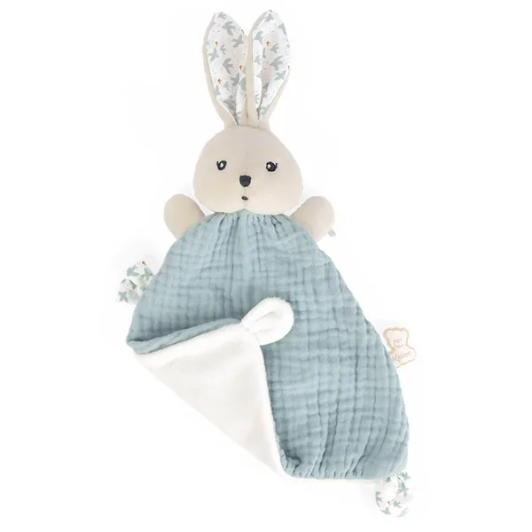 DOUDOU LAPIN COLOMBE Voici un tendre doudou lapin aux longues oreilles et petits petons faciles à attraper qui ravira les tout-petits. Son corps est composé de deux matières pour un côté doux et un côté moelleux. Il est habillé d’un imprimé en tissu peau de pêche au motif classique, poétique et intemporel. Son petit minois fera craquer bébé qui l’adoptera aussitôt ! Rembourrage en polyester recyclé. Lavable en machine. Présenté dans un joli coffret cadeau personnalisable avec un message dans l’espace disponible sous le couvercle.