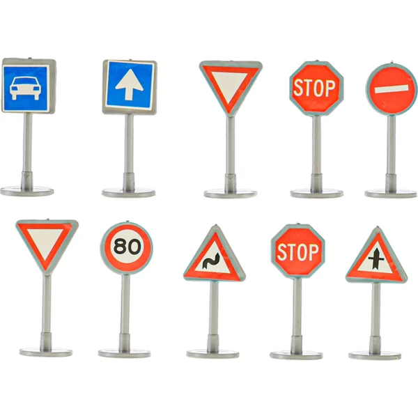 Grand ensemble de panneaux de signalisation pour enfants en plastique.