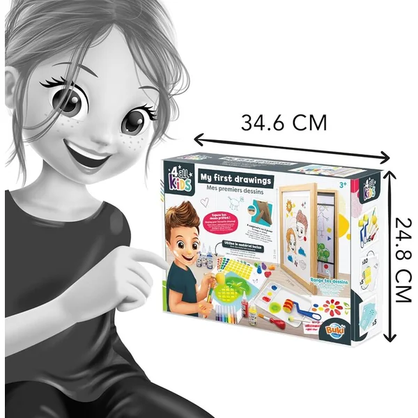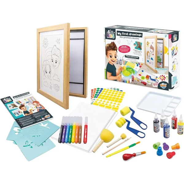 Ce kit créatif de Buki est idéal pour les jeunes artistes qui souhaitent découvrir la magie du dessin et de la peinture. Mes premiers dessins propose un large choix d’outils et de fournitures pour créer des œuvres colorées et ludiques, le kit comprenant des peintures lavables, des feutres, des tampons, des pochoirs et un cadre spécial pour exposer les œuvres terminées.