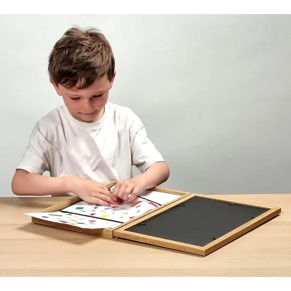 - Cadre pour dessins : Les enfants peuvent insérer leurs dessins préférés dans le cadre, qui se ferme facilement et peut être fixé au mur ou exposé.
