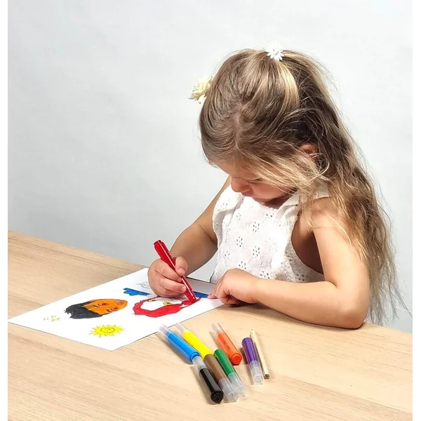 - 8 feutres lavables à pointe ronde : Idéaux pour les dessins d’enfants, avec un nettoyage facile.