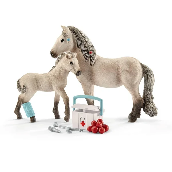 Kit de jeu complet avec figurines et accessoires à déballer et emmener partout pour jouer. Quand elle sera grande, Hannah aimerait bien devenir vétérinaire, comme sa mère. Alors qu’une jument islandaise donne naissance à son poulain, Hannah est très excitée et prête à intervenir avec son kit de secours. Heureusement, la jument et son poulain sont en pleine forme. Quelle journée magnifique ! Hannah ouvre quand même la mallette du kit de secours pour en sortir le stéthoscope, afin d’ausculter les deux chevaux et de s’assurer que tout est en ordre. Les figurines Schleich sont toutes modélisées en détail et soigneusement peintes à la main ; elles assurent des jeux à forte valeur pédagogique.