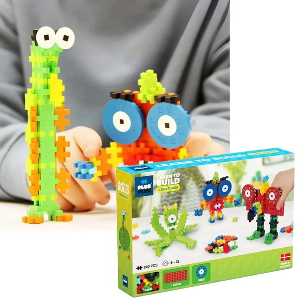 Bienvenue dans le monde rigolo des créatures Plus-Plus ! Avec ce kit de jeu de construction, amusez-vous à créer et construire d’adorables petits monstres aux couleurs flashy. Un toucan aux allures de robot, un hibou haut en couleurs… laissez parler votre imagination et amusez-vous ! Ce set découverte contient 240 pièces CLASSIC (20 mm et 10 couleurs), un châssis, 4 roues et une notice de construction.