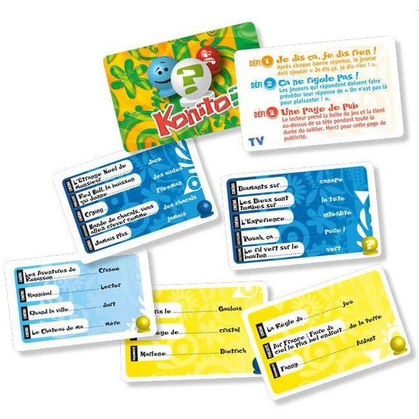 Ce jeu compatible avec Konito contient 112 cartes avec des phrases et expressions cultes tirées du cinéma, des séries télévisées. Comme Konito 2, vous pouvez jouer sans le jeu de base et sans plateau.