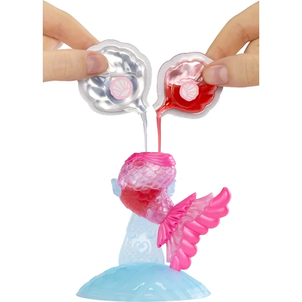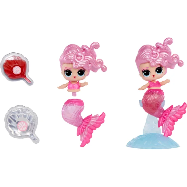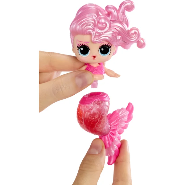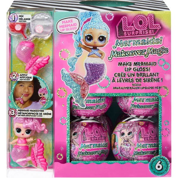 Prépare-toi pour une nouvelle expérience de jeu avec les poupées L.O.L. Surprise! Sirènes. Ces poupées innovantes offrent une combinaison unique de créativité, de mode et de plaisir avec de l’eau. Tu peux les emmener dans le bain. Crée un maquillage marin non seulement pour ta poupée, mais aussi pour toi. Le pack comprend deux couleurs que tu peux mélanger pour créer ta propre teinte de gloss à lèvres, que tu conserveras dans la nageoire de la poupée. Celle-ci est d’abord transparente, mais après avoir été remplie de maquillage, elle change de couleur. L’emballage de la poupée se transforme en un aquarium stylé ou un jacuzzi.