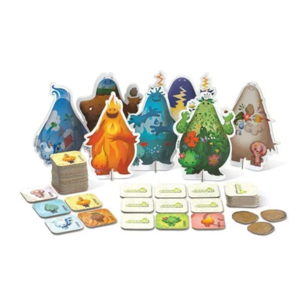 En retournant des paires d’Elémons, vous bénéficierez du pouvoir de ces petites créatures élémentaires: regardez des tuiles faces cachées, les bloquer pour les autres joueurs, rejouez ou voler dans les collections des autres joueurs.