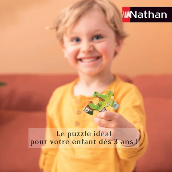 Le puzzle, jeu éducatif par excellence, permet à l’enfant de faire ses premières découvertes en développant sa coordination visuelle et motrice et en aiguisant sa curiosité et son esprit logique. Parce que nous souhaitons donner goût au savoir et distraire intelligemment, nous avons mis au point une gamme de puzzles qui accompagnera votre enfant dans toutes les étapes de son développement. Le puzzle-cadre de 15 pièces est un format idéal pour démarrer en douceur dès 3 ans, dans l’univers de ses héros préférés ! Le petit plus Nathan, c’est l’image et la forme des pièces imprimées sur le fond du cadre, pour accompagner l’enfant dans son apprentissage du puzzle.
