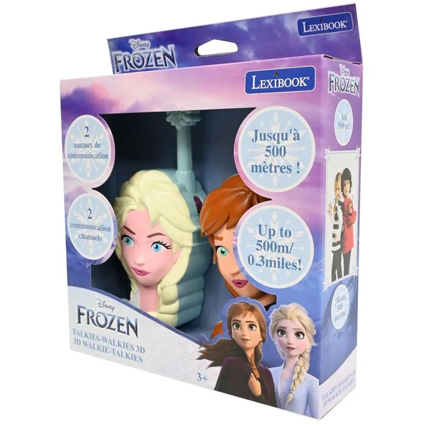 Communique avec tes amis avec une magnifique paire de talkies walkies la reine des neiges3d un design ergonomique pour une prise en main facile une portee de transmission jusqu à 500m en exterieur peut varier en fonction du relief et conditions climatiques superbe design 3d avec elsa et anna clip ceinture 2 canaux de communication.