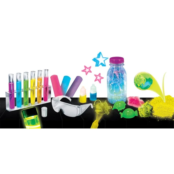 Découvrez les secrets de la luminescence et de la phosphorescence avec les lumières éteintes pour devenir un vrai scientifique en action. Le jeu de science phosphorescente est parfaitement adapté aux enfants à partir de 8 ans. Les éléments et produits inclus dans le kit sont sans danger pour l’enfant.
