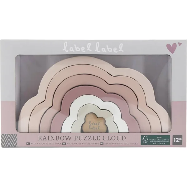 Le puzzle est fabriqué en bois de haute qualité certifié FSC et chaque nuage est coloré dans les couleurs douces du Label Label à l’aide d’une peinture à l’eau adaptée aux enfants.