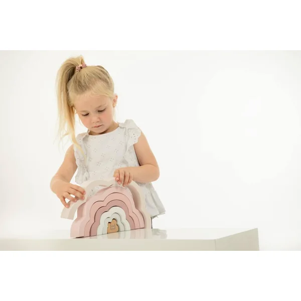 Cet ensemble de 7 arcs en forme de nuages aux couleurs douces offre des possibilités infinies pour empiler, construire et trouver le bon équilibre. Grâce aux différentes tailles des arcs, vous pouvez créer des figures plates ou tridimensionnelles différentes à chaque fois. Votre enfant peut développer pleinement sa créativité et mettre toutes ses idées à l’épreuve.