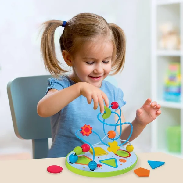 Un labyrinthe (loopings) en bois et métal avec 10 formes coulissantes et 4 formes à positionner sur le plateau. Ce jeu permet le développement de la motricité : il stimule la coordination main/œil. et l’apprentissage des couleurs et des formes. Léger et facile à manipuler, il s’adapte aux petits mains des enfants.