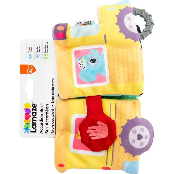 Cet adorable autobus en tissu se déplie pour révéler des couleurs vives, des visages sympathiques dans chaque fenêtre, ainsi qu’un miroir caché sous un rabat avec bruits de papier-froissé. L’une des roues est un jouet de dentition texturé, sous l’autre roue se cache un pouet-pouet, et lorsque vous retournez l’ensemble, vous trouverez des illustrations en noir et blanc représentant de jolies scènes de cour d’école. Voici un jouet parfait pour le premier parcours éducatif de votre enfant ! Livre sensoriel en tissu qui se déplie pour devenir un bus scolaire – Encourage l’apprentissage sensoriel et l’apprentissage par cause à effet – Les couleurs vives et les illustrations en noir et blanc attirent l’attention – Miroir caché sous un rabat froissé, matériaux et fabrication de haute qualité – entièrement sûr et durable – L’une des roues est un jouet de dentition texturé et sous l’autre roue se cache un pouet-pouet –
