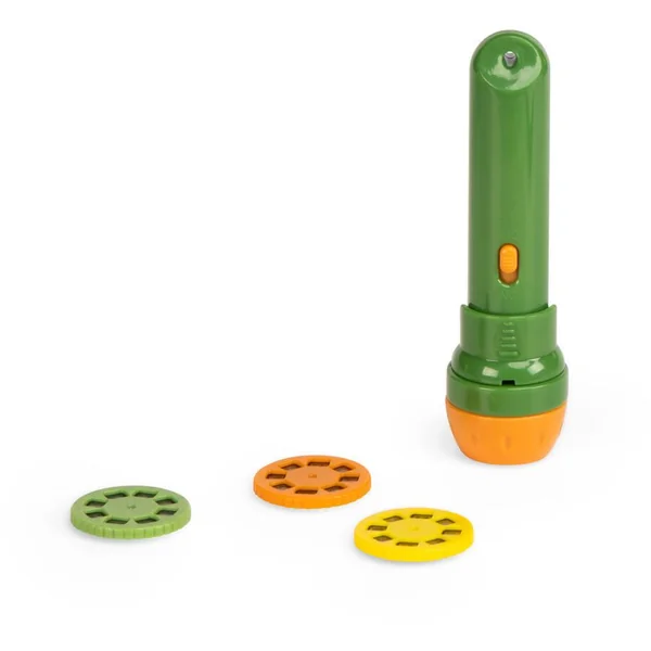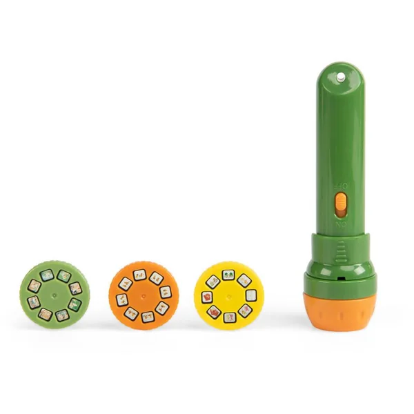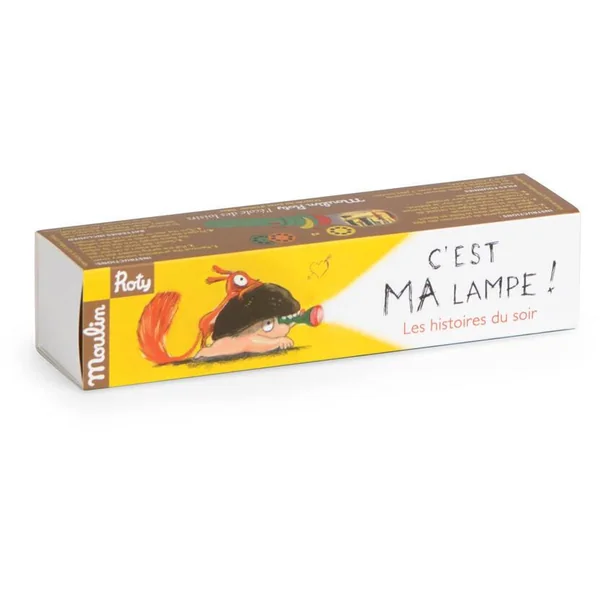 Lampe torche de poche où chacun des 3 disques projetés sur le mur raconte les aventures de l’écureuil, héros de l’école des loisirs, pour imaginer de belles histoires avant de s’endormir le soir. On éteint la lumière pour que la magie opère et c’est parti…