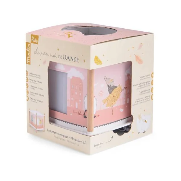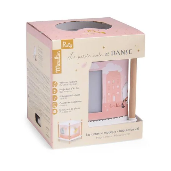 Lanterne magique pour endormir bébé avec un décor de petites souris danseuses dans la chambre. Multifonction, elle projette des étoiles, joue 4 berceuses, se connecte à distance et détecte même les pleurs ! Câble USB inclus.En partenariat avec Trousselier.