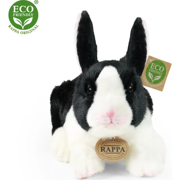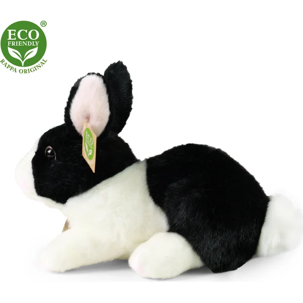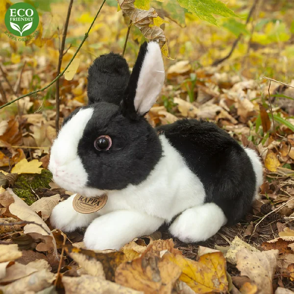 Lapin en peluche couché blanc et noir 23 cm ECO-FRIENDLY