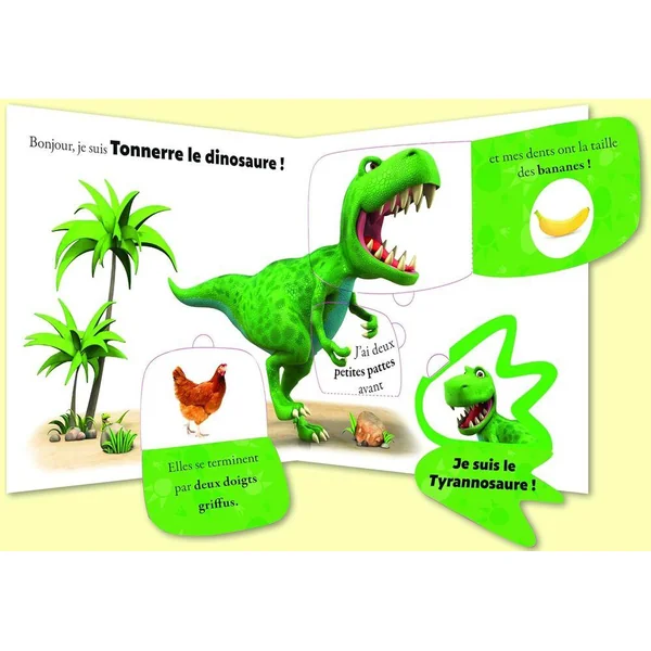 Le Tyrannosaure, le Stégosaure, le Diplodocus, le Parasaurolophe, le Stégosaure…Lis les indices pour découvrir qui se cache sous chaque volet et découvre les fabuleux dinosaures qui ont régné sur la Terre il y a des millions d’années !Un livre à flaps pour tous les fans de la série « Le monde de Tonnerre le Dinosaure ».