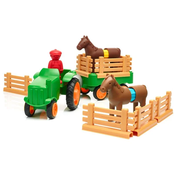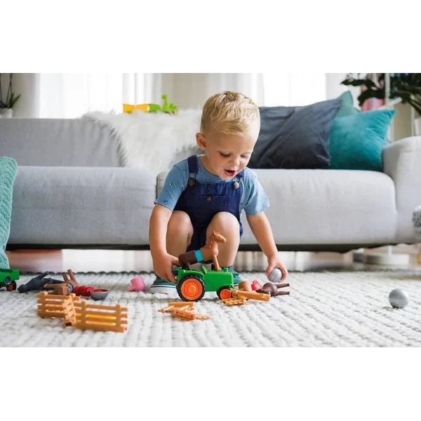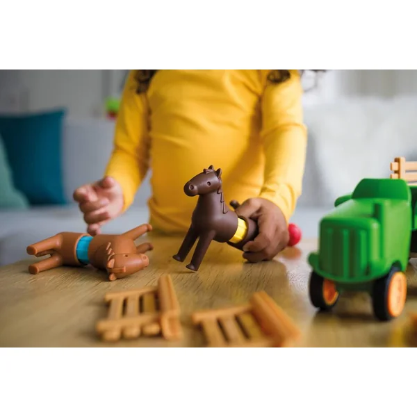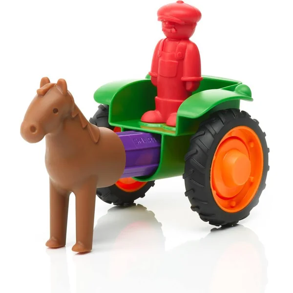 Un jeu de construction magnétique idéal pour les petites mains avec des pièces faciles et agréables à manipuler. Ce coffret contient 22 pièces de jeu : 2 têtes d’animaux, 2 queues d’animaux, 2 grands bâtonnets, 2 petits bâtonnets, 1 boule, 1 personnage, 2 petites barrières, 6 grandes barrières et 4 pièces permettant de réaliser le tracteur et sa remorque.